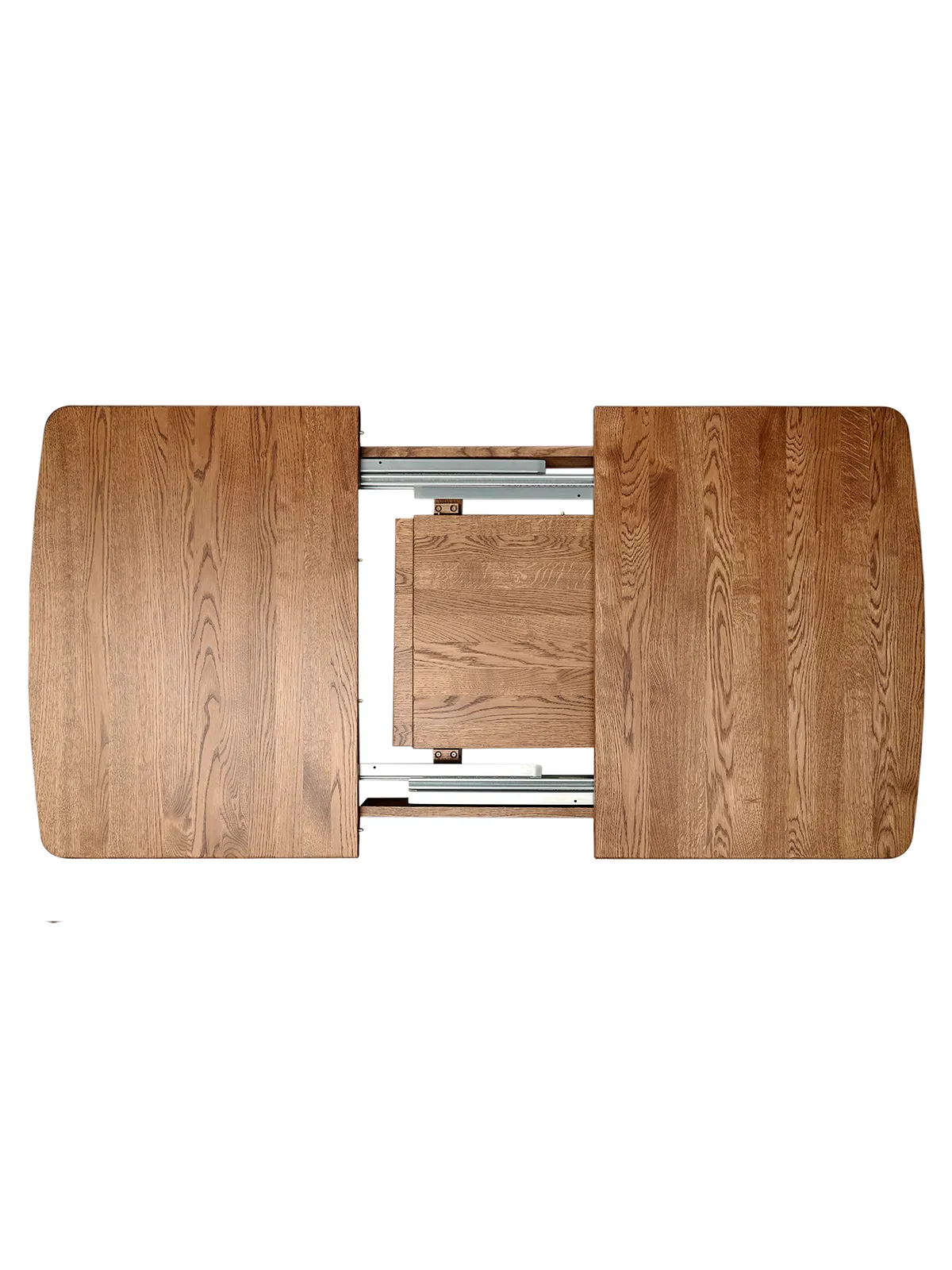 Unser Esstisch Aarhus aus massiver Eiche vereint zeitlose Eleganz mit Alltagstauglichkeit und ist somit das ideale Herzstück für jedes Zuhause. Dank zweier praktisch im Tisch integrierter Verlängerungsplatten lässt er sich mühelos erweitern und bietet so Platz für mehr Gäste – perfekt für gesellige Runden.
